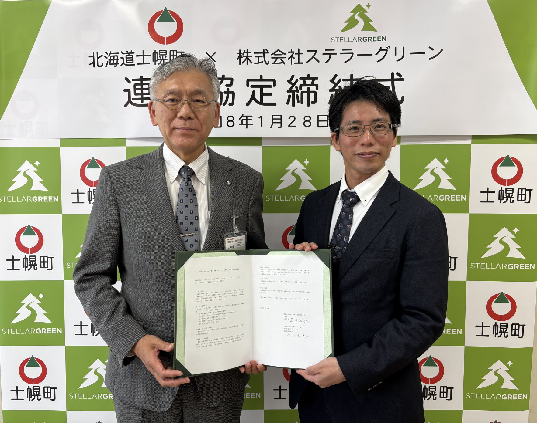 北海道士幌町(町長:髙木 康弘、以下「士幌町」)と森林カーボンクレジット創出の支援事業を展開する株式会社ステラーグリーン(本社:東京都中央区、代表取締役社長 兼 CEO:中村 彰徳、以下「ステラーグリーン」)は、2026年1月28日(水)に「誰もが関わりたくなる農村ユートピアの実現に向けた連携協定」を締結しました。